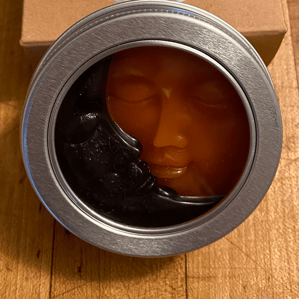 A tingly sensation on the sun side, be sure to wear gloves if you’re going to be rubbing your eyes (or other personal sensitive areas!), as this sun contains cayenne. The moon side is cooler.